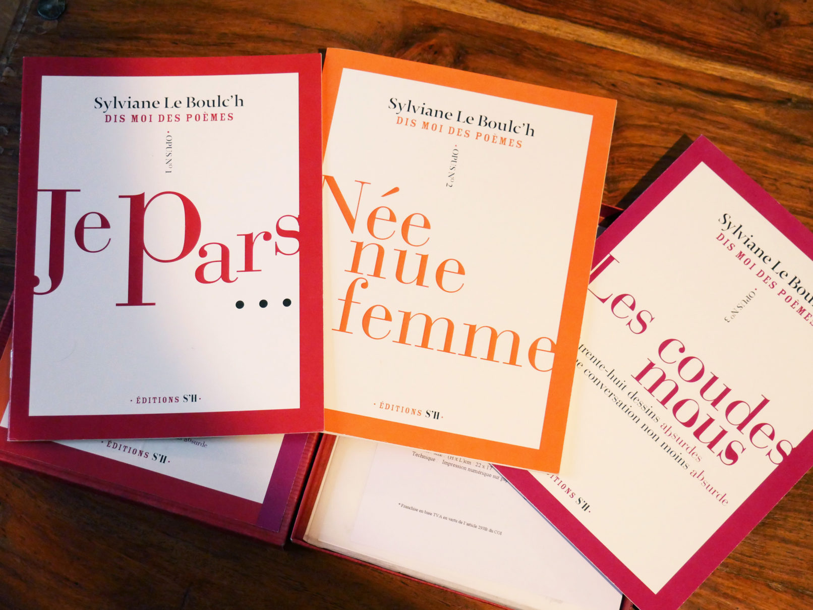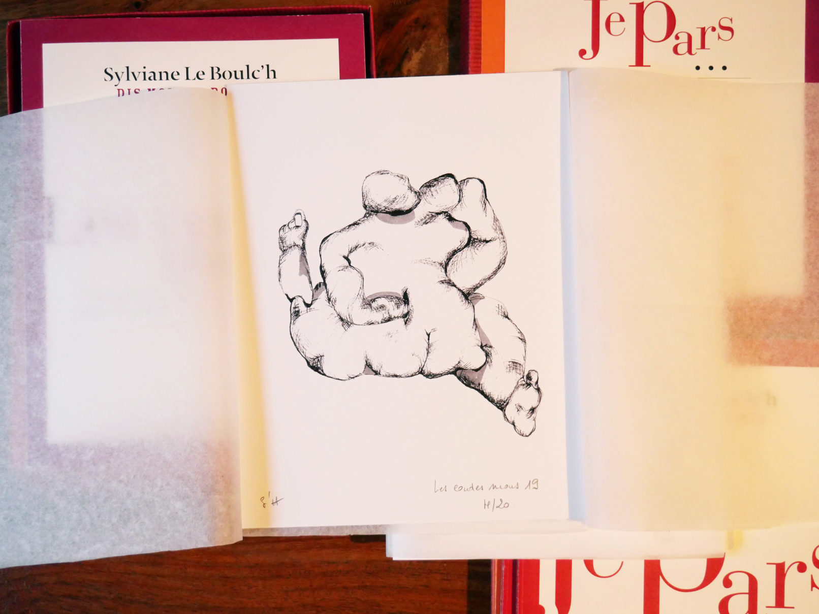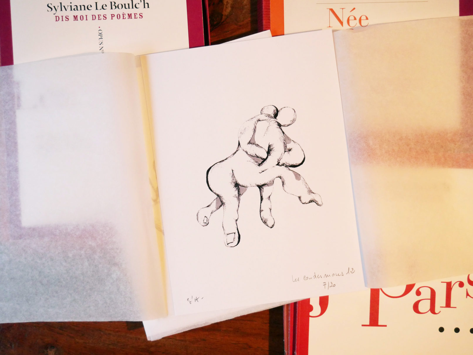 Trois recueils de dessins et aquarelles, réalisés par l’artiste peintre Sylviane Le Boulc’h, accompagnés de poèmes, l’ensemble présenté dans un boitier avec dessins numérotés.
