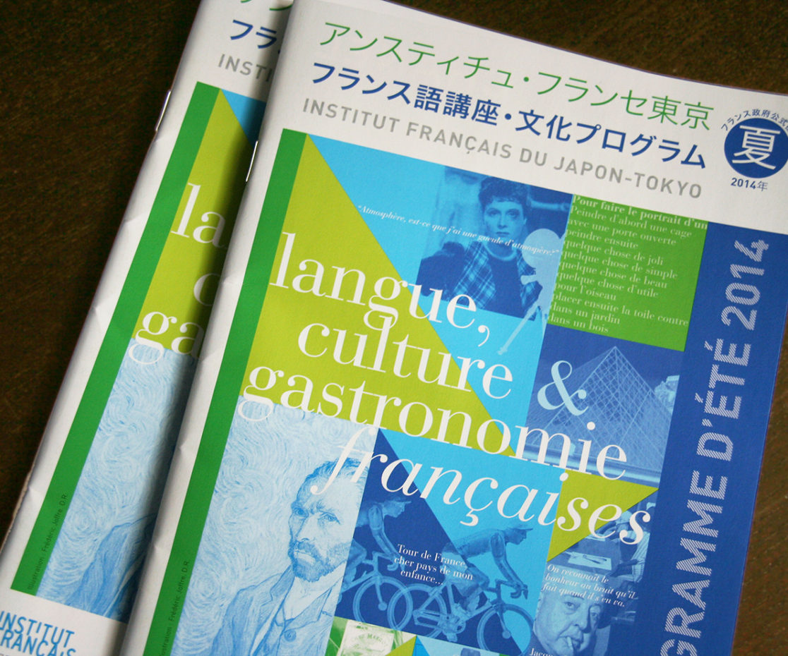 L’institut français du Japon à Tokyo est un des acteurs principaux de la diffusion de la culture française au Japon sous l’autorité de l’ambassade de France. Cette institution organise des cours de français, des conférences, débats, expositions autour de la culture française (littérature, cinéma, arts, gastronomie, etc.).  Pour assurer cette mission, l’IFJ publie brochures, flyers et annonces-presses présentant l’ensemble de ses activités chaque saison. L’ensemble des éléments réalisés au cours de l’année 2014 ont été conçues dans un esprit “frenchy but chic” très populaire au Japon.