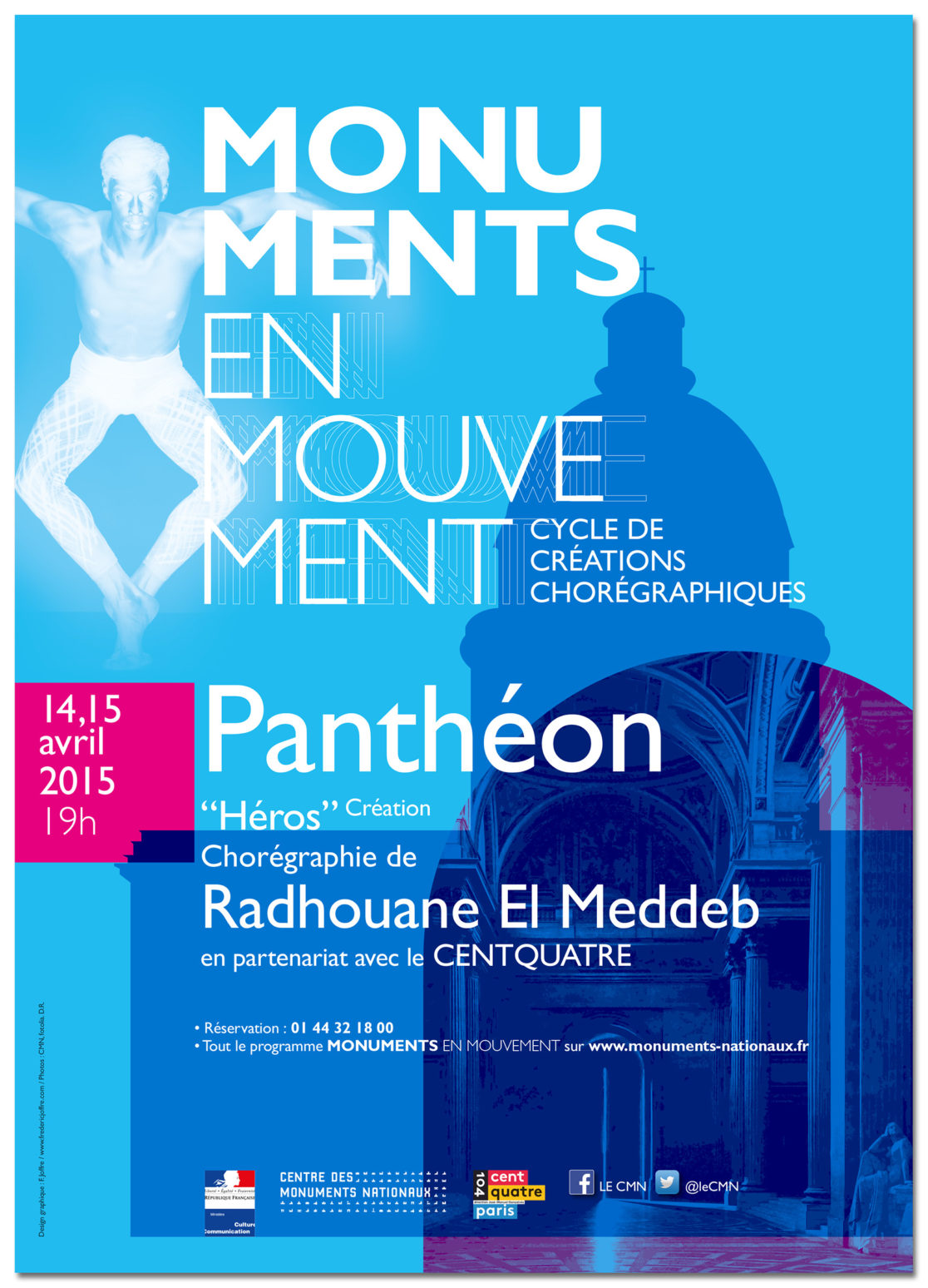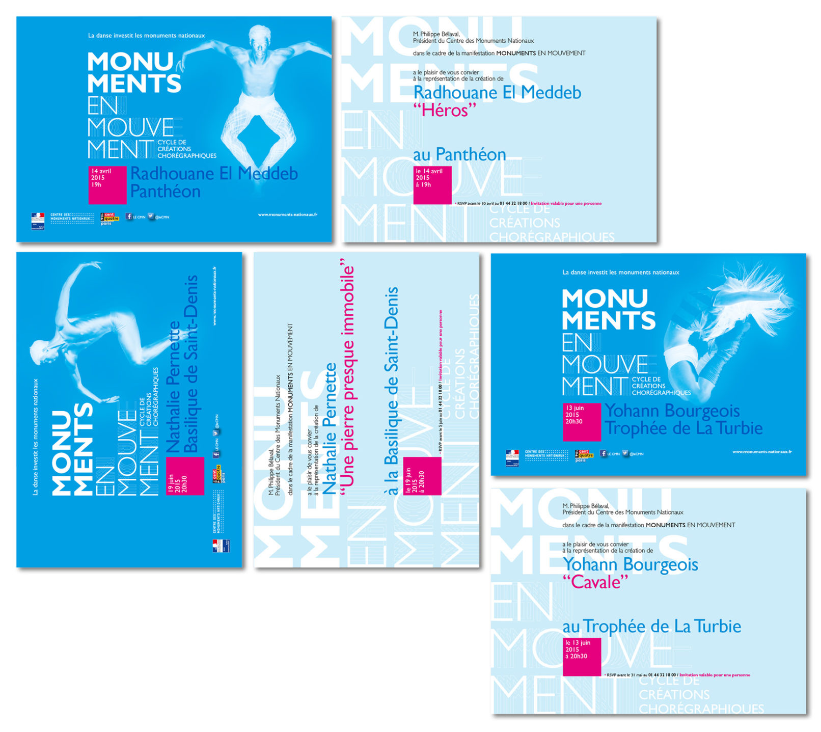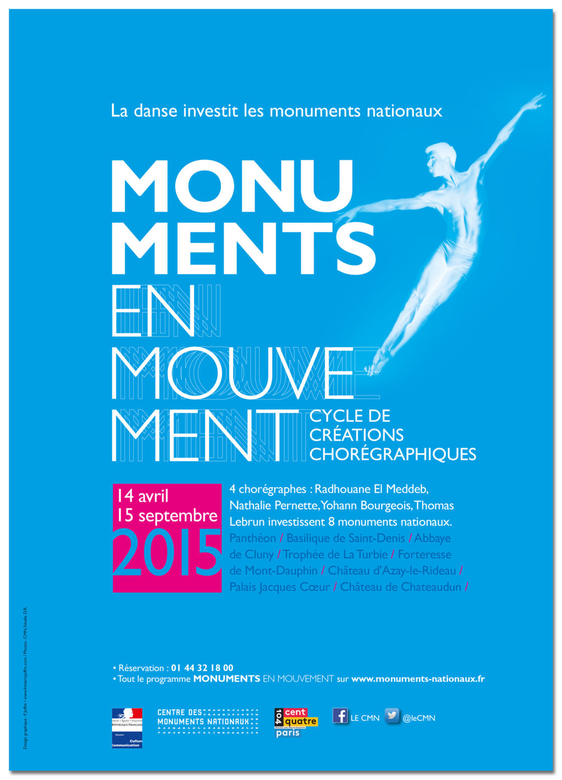 Le Centre des monuments nationaux a lancé un appel d’offres en 2015 pour concevoir la promotion d’événements chorégraphiques pour le moins originaux, puisque devant se tenir dans les espaces de monuments nationaux (Panthéon, cathédrale de Saint-Denis, etc.). Le cahier des charges exigeait une ligne graphique colorée, « d’jeune », dynamique, fraîche… Le CNM a opté en définitive pour une création peu colorée, moyennement jeune… et pas vraiment dynamique.