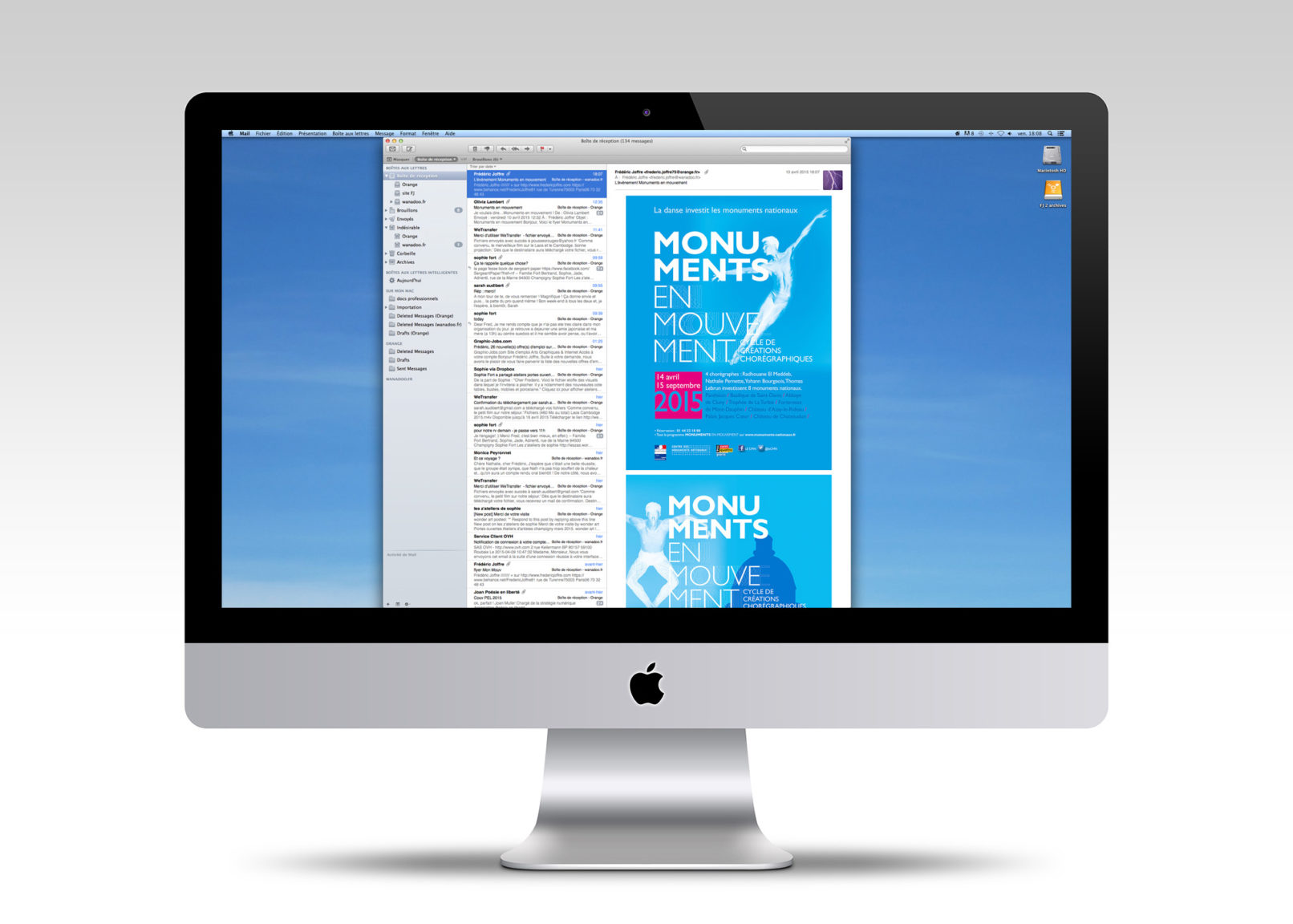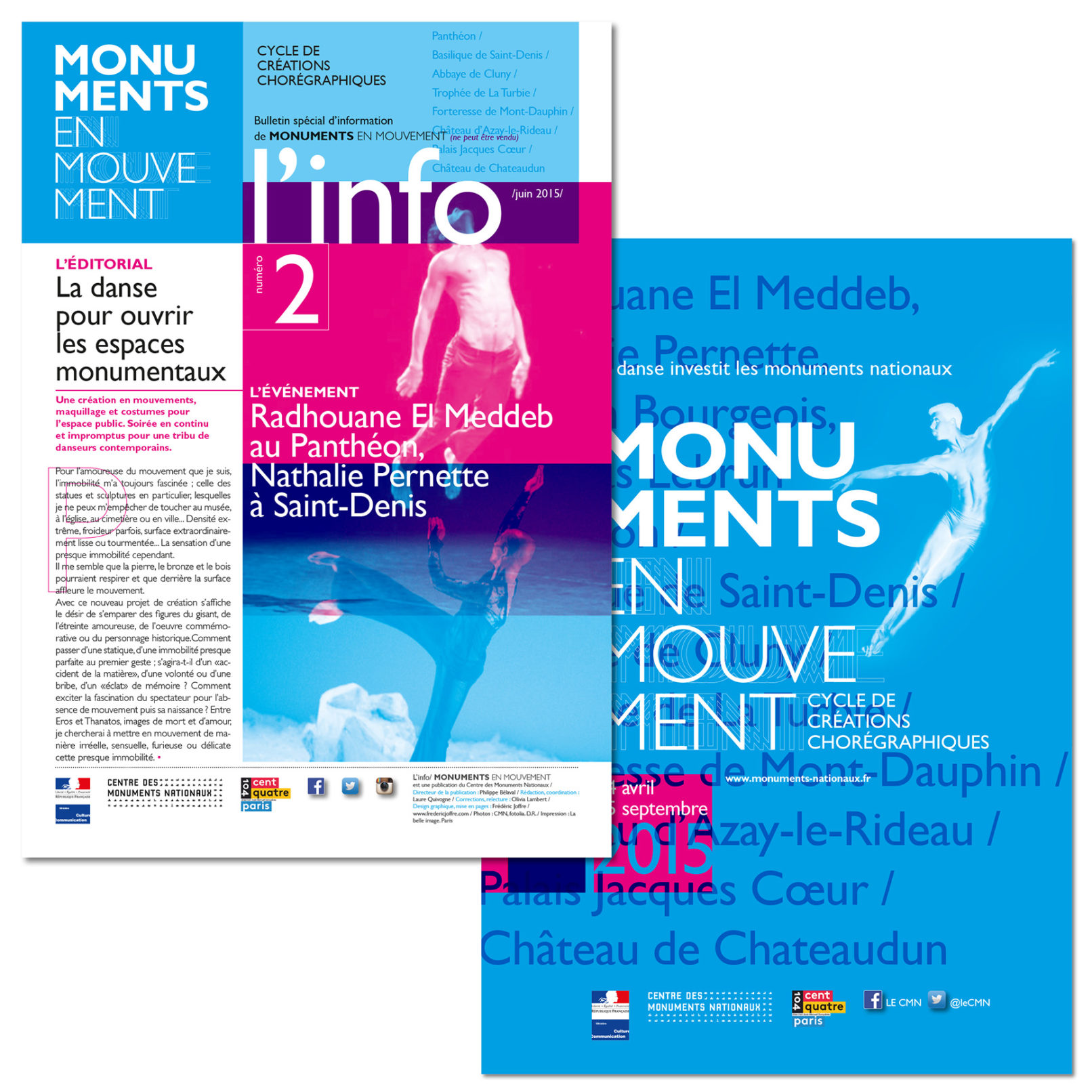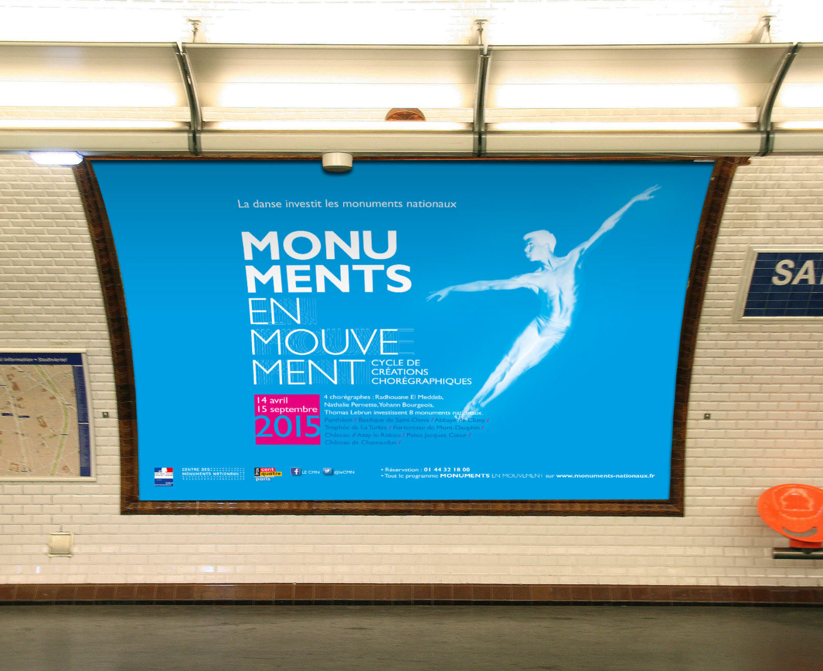 Le Centre des monuments nationaux a lancé un appel d’offres en 2015 pour concevoir la promotion d’événements chorégraphiques pour le moins originaux, puisque devant se tenir dans les espaces de monuments nationaux (Panthéon, cathédrale de Saint-Denis, etc.). Le cahier des charges exigeait une ligne graphique colorée, « d’jeune », dynamique, fraîche… Le CNM a opté en définitive pour une création peu colorée, moyennement jeune… et pas vraiment dynamique.